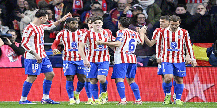বিটিসি স্পোর্টস ডেস্ক: কোপা দেল রে সেমিফাইনালের প্রথম লেগে আতলেতিকো মাদ্রিদ বার্সেলোনাকে ঘরের মাঠে ৪-০ গোলে হারিয়ে ফাইনালের পথে বড় জয় পেয়েছে। মেত্রোপলিতানো স্টেডিয়ামে বৃহস্পতিবার রাতে অনুষ্ঠিত ম্যাচে আতলেতিকো ম্যাচের শুরুতেই নিজেদের সুবিধা ধরে নেয় এবং বিরতির আগেই তিন গোলের ব্যবধানে এগিয়ে যায়।