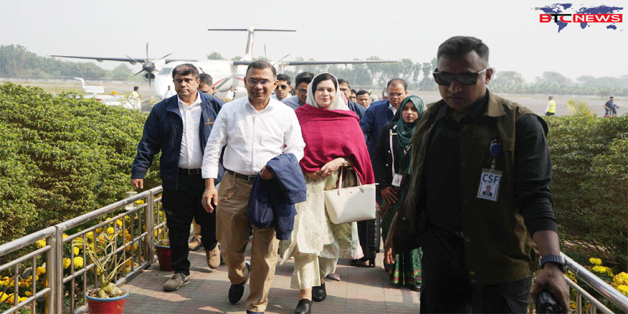 এর আগে বিমান বাংলাদেশের একটি ফ্লাইটে রাজশাহী বিমানবন্দরে পৌঁছান বিএনপির চেয়ারম্যান।