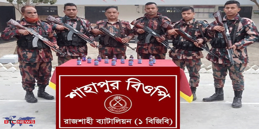 একুইদিন রাতে শাহাপুর বিওপি কাটাখালী থানার নওদাপাড়ায় মাদক বিরোধী অভিযান চালিয়ে মাদক ব্যবসায়ী কর্তৃক ফেলে যাওয়া প্লাষ্ট্রিকের ব্যাগ তল্লাশী করে ১০ বোতল ভারতীয় ফেন্সিডিল ও ৫ বোতল BRONCOF-C সিরাপ জব্দ করেছে।