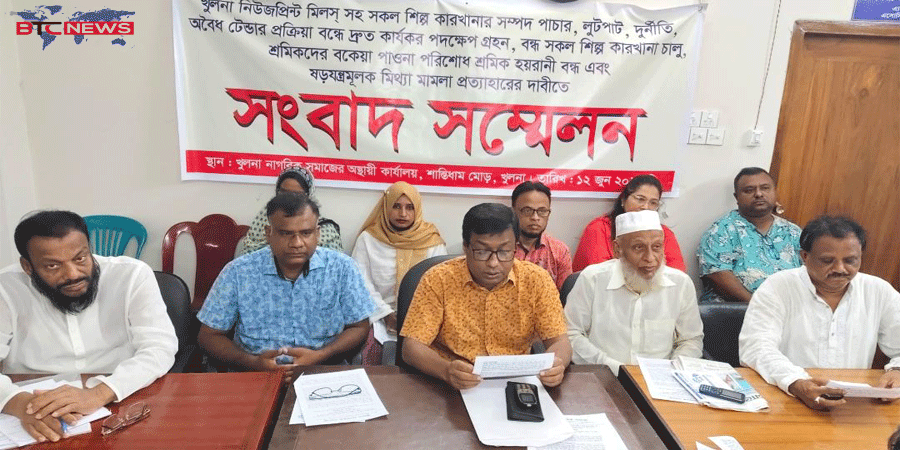 শিল্প-কারখানার লুটপাট ও বন্ধ কারখানা চালুর দাবিতে খুলনা নাগরিক সমাজের সংবাদ সম্মেলন