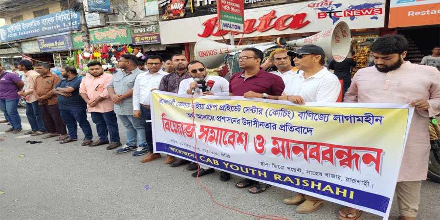 রাজশাহীতে প্রাইভেট কোচিং বাণিজ্যে প্রশাসনের উদাসীনতার প্রতিবাদে ১১ দফা দাবিতে মানববন্ধন